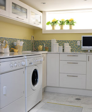 Room Closet. It's a very small closet, it holds a stacking washer and dryer and has a spare 8 inches to hold the ironing board. It's going to require a lot of small space solutions but i'm looking forward to the challenge, although a nice big laundry room like these would be nice too.