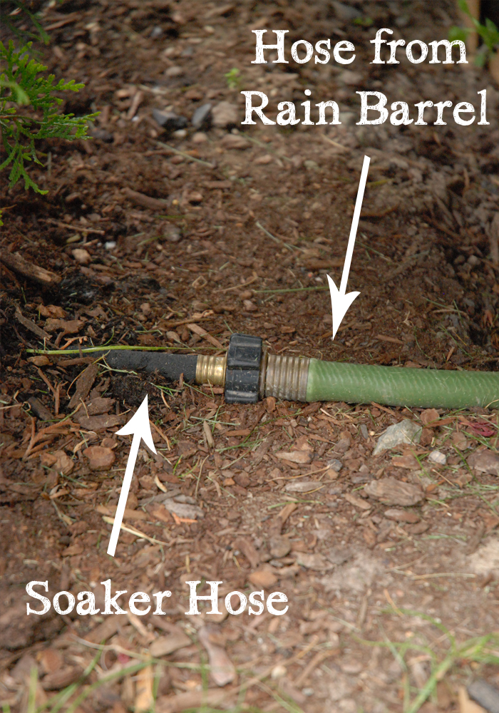 Here's a link to our Rain Barrel Guide from last year! Our rain barrel is one of my favorite green changes we've made . . . and now with the addition of a soaker hose it might take top billing.